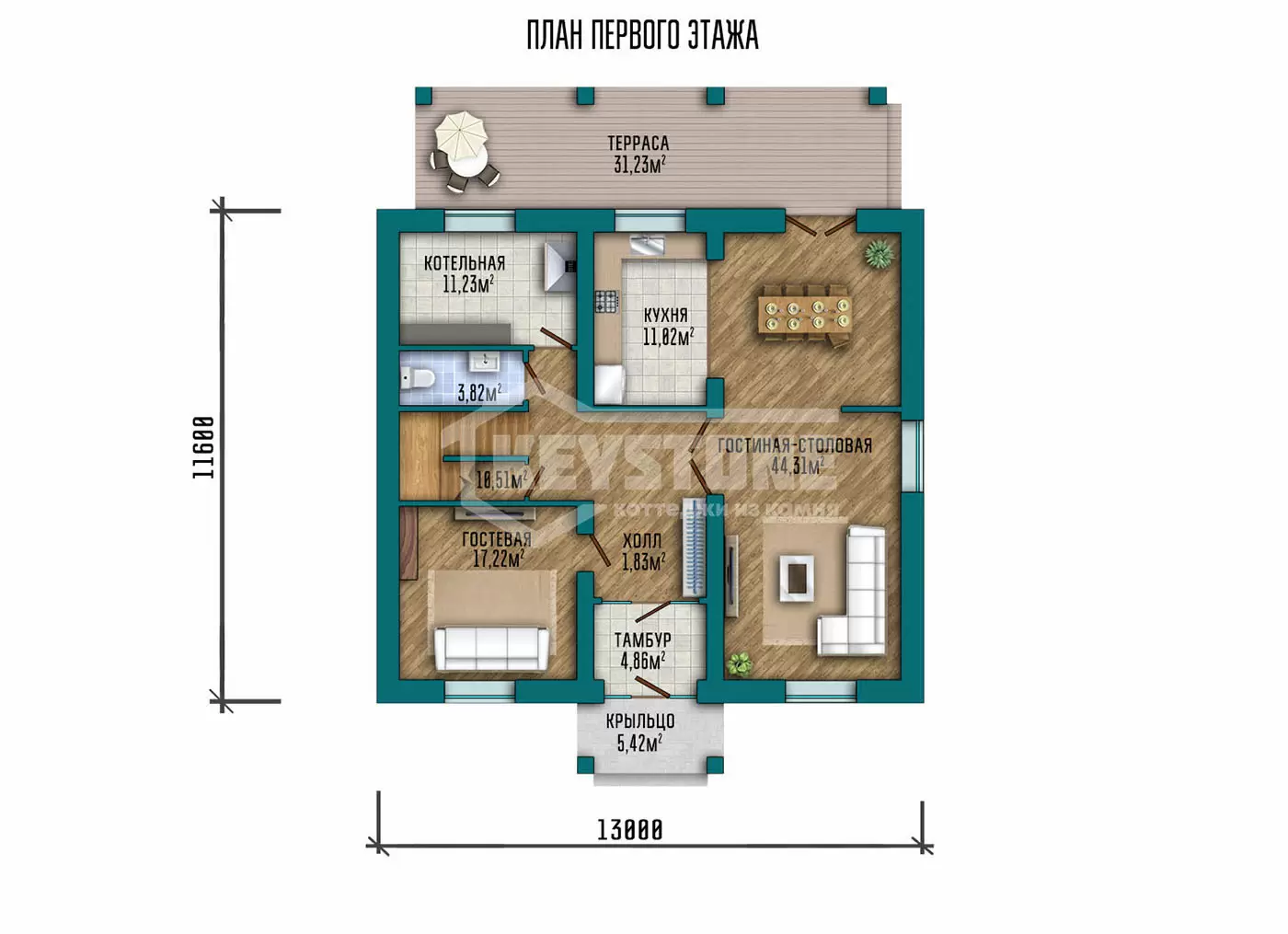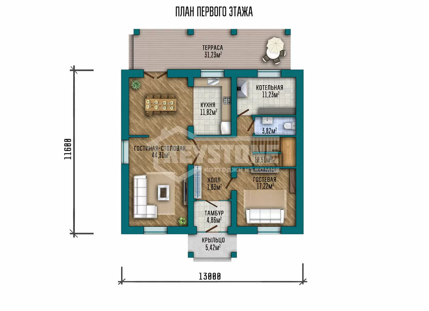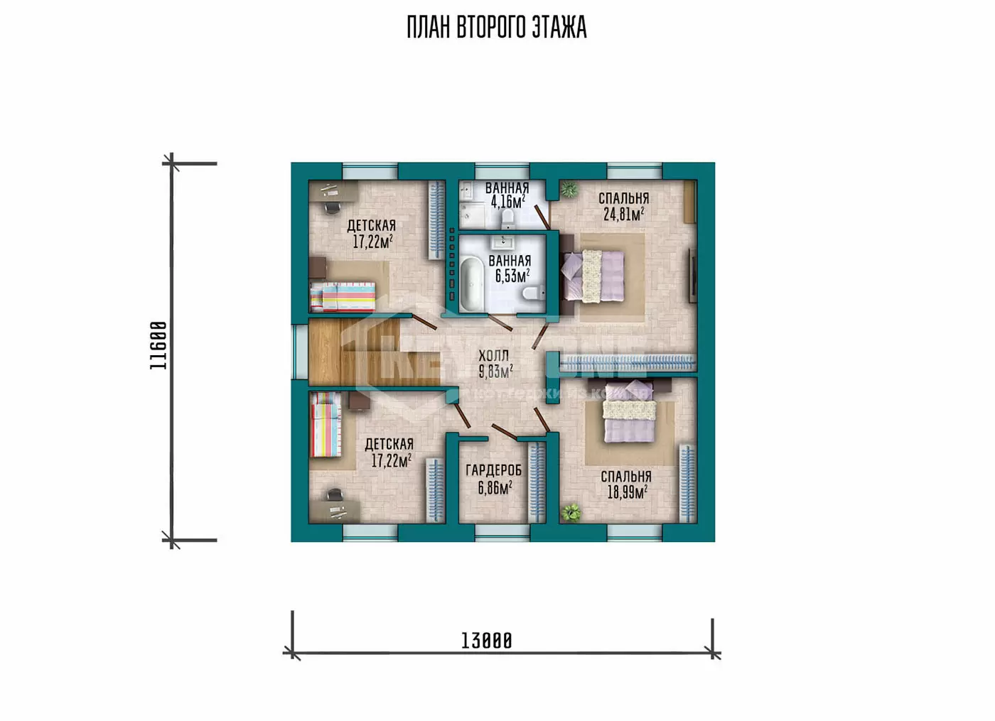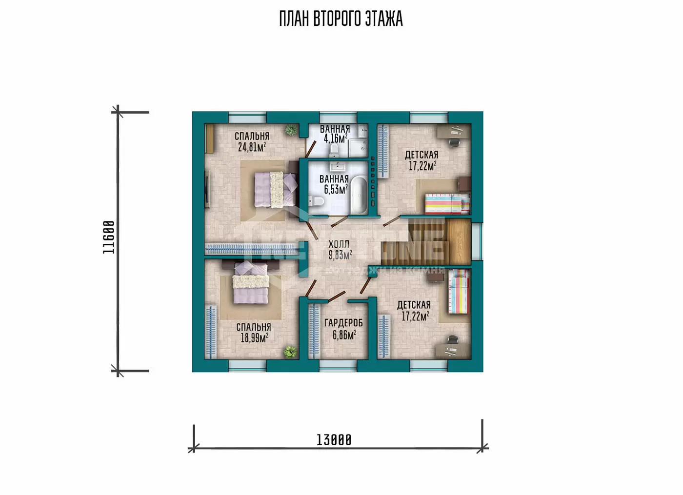 • Перегородки второго этажа - каркасные из антисептированного дерева
